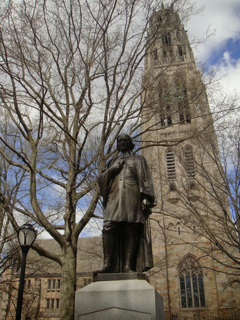 Hoy me he fijado en otra de las estatuas que se encuentran dentro del Old Campus de Yale, se trata de Abraham Pierson, el primer rector del Collegiate School, que después se convertiría en la Universidad de Yale, entre 1701 y 1707, año en el que falleció. Uno de los colleges de Yale recibe el nombre de Pierson en su honor.