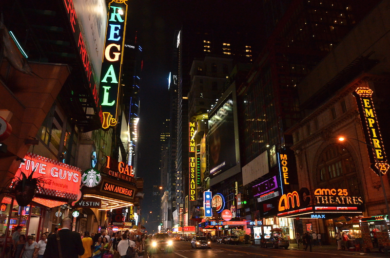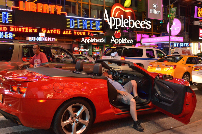 Después de cenar nos vamos un rato a disfrutar del ambiente de Times Sq, coches de lujo, gente envuelta en banderas, pantallas enormes con los anuncios más caros del mundo, muñecos Disney,etc, todo cabe en este lugar, es necesario pararse un rato fuera del tráfico y solamente observar.
