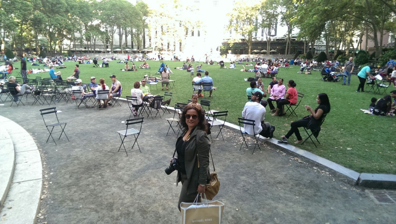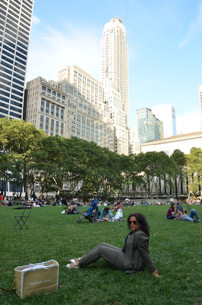 Decidimos ir un rato al hotel para dejar algunas cosas y descansar un rato antes de ir a ver los fuegos artificiales, así que cogemos el metro en Bleecker St y nos bajamos muy cerca de Bryant Park, mi parque preferido de Nueva York, un rinconcito encantador en medio del Midtown, una gran pradera verde rodeada de alguno de los edificios más bonitos de la ciudad.