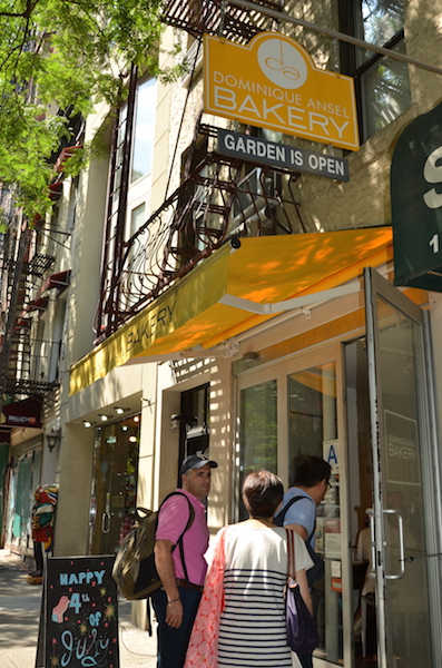 Nuestro siguiente destino es otro de los barrios de moda, el Soho, con sus característicos edificios con las escaleras metálicas de emergencia, sus tiendas chic, sus cafés y su gente. Sin duda es uno de los barrios preferidos de los neoyorkinos y a nosotros nos ha encantado. Nuestra primera parada ya en el Soho ha sido una de las Bakery de moda de la ciudad, Dominique Ansel, en el 189 Spring St, sólo con ver la larga cola de gente que espera para pasar te hace pensar que el producto que venden es realmente rico, así que decidimos que nosotros también queremos probar sus delicias….. Tras esperar un buen rato nos hacemos con uno de sus famosos DKA (Dominique’s Kouign Amann), un dulce de masa parecida al croissant, con una corteza crujiente y caramelizada y un sabor único, ha merecido la pena la espera, además ya en la fila podías ir viendo los mostradores con todos los productos que tienen….vamos que cuando llegas a la zona de pedir, ya se te ha hecho la boca agua una y mil veces.