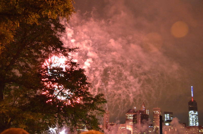 Para ver los fuegos artificiales del 4 de Julio, decidimos aunque con muchas dudas, ir a la zona del puente de Brooklyn, digo con muchas dudas porque los fuegos artificiales del 4 de julio en Nueva York son todo un acontecimiento y hay miles de personas, muchos de los cuales llevan horas esperando en los mejores lugares para verlos. Nosotros no somos muy amantes de las aglomeraciones, y mucho menos vamos a estar esperando cuatro horas para tener un buen sitio desde donde ver los fuegos. Ya en el metro se nota que mucha gente ha decidido el mismo lugar que nosotros, de hecho la policía va controlando las diferentes salidas y va guiando a la gente con el fin de que no se formen tapones en ningún lugar, la verdad es que el despliegue policial para este día ha sido realmente espectacular. Cuando llegamos al Brooklyn Bridge Park ya está lleno de gente, aún así nos quedamos por allí. A las 9.30pm comienzan los fuegos, y la gente empieza a alucinar y a agolparse, son bonitos, sobre todo por el telón de fondo, pero como decía, a nosotros no nos gustan las aglomeraciones, así que lo vemos un poco y decidimos ir a coger el metro antes de que finalicen y haya una nueva estampida de gente queriendo volver a Manhattan.