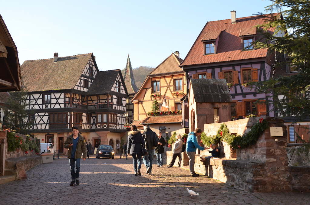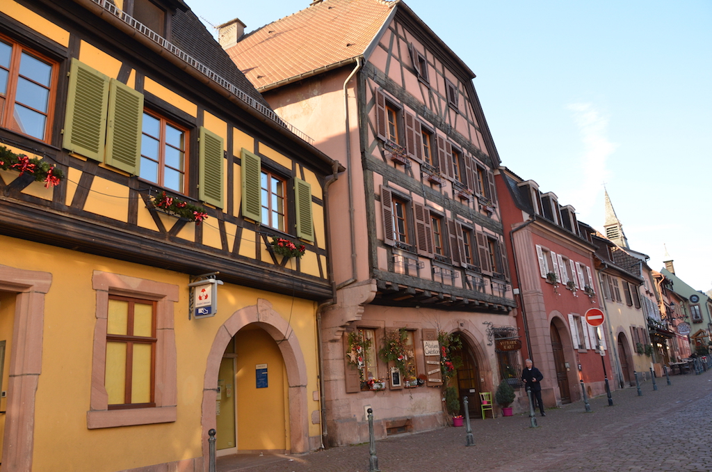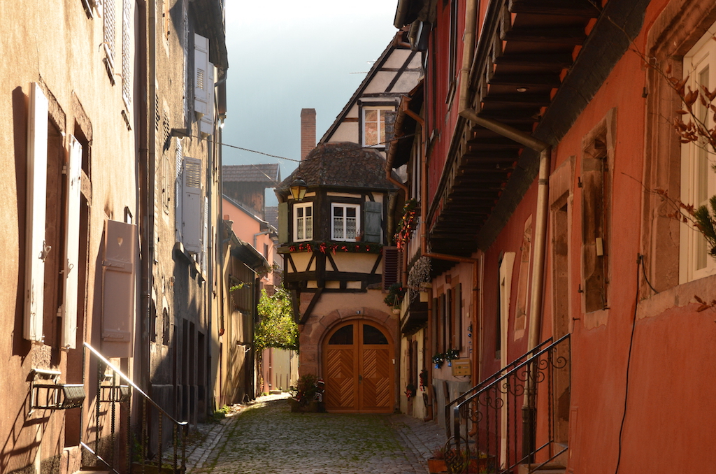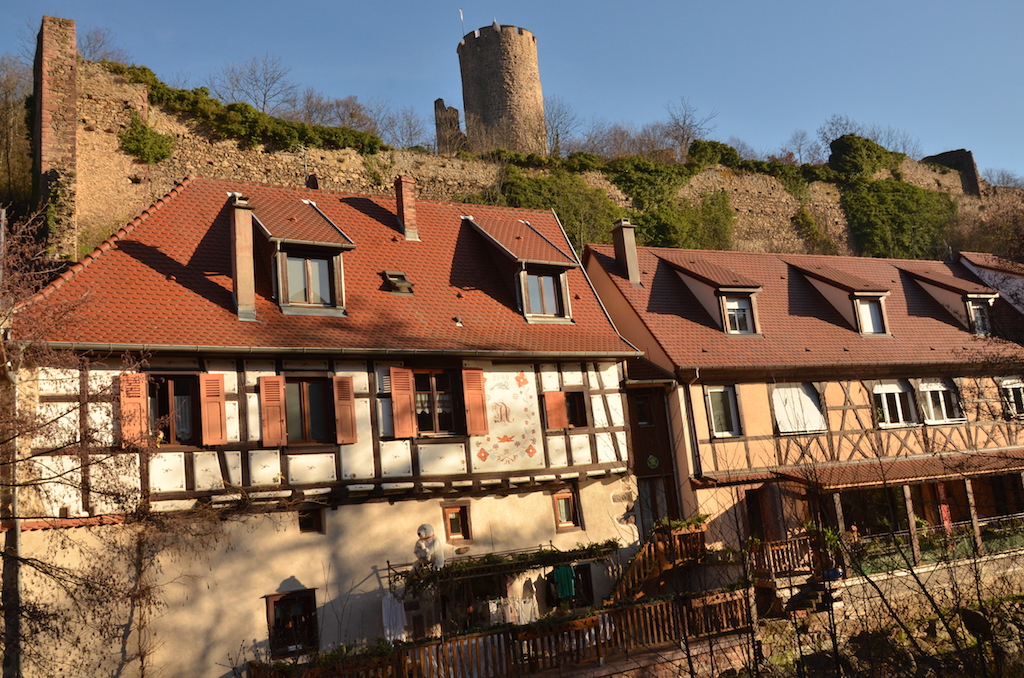 Después de disfrutar de este espectacular enclave, poco a poco vamos a recoger el coche, que hemos dejado fuera del recinto del pueblo, para dirigirnos hasta nuestro siguiente destino. Reconozco que nos costó bastante dejar Kaysersberg, de buena gana hubiésemos seguido paseando por callecitas empedradas descubriendo rincones preciosos, incluso subir por un pequeño sendero hasta lo que queda de su castillo, pero en esta época del año anochece muy pronto y aún nos quedaban cosas por ver hasta llegar a Ribeauvillé, donde teníamos nuestro alojamiento para esa noche.