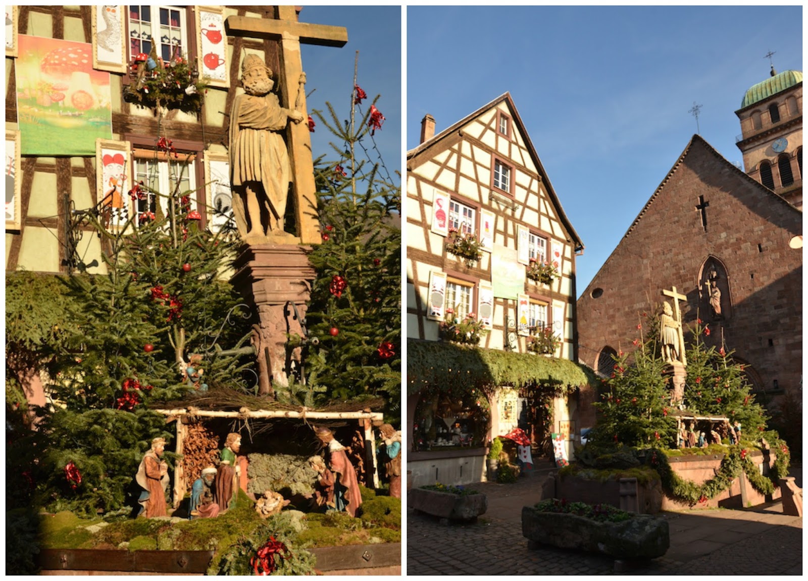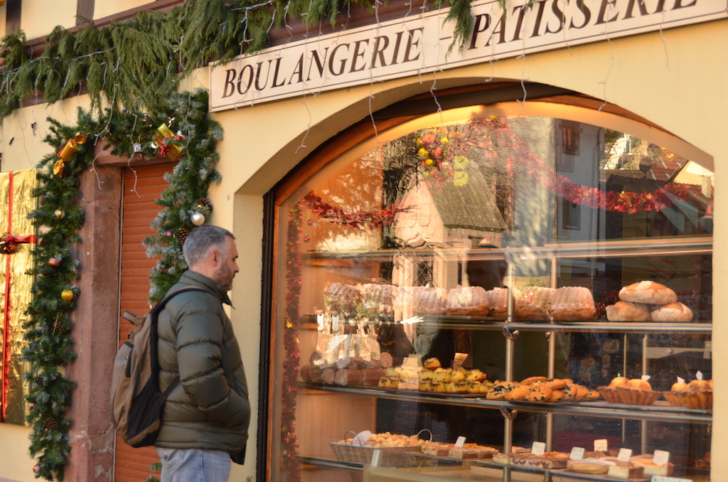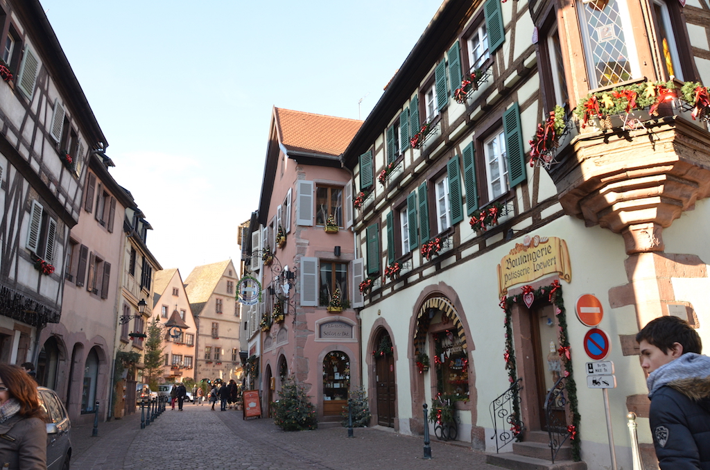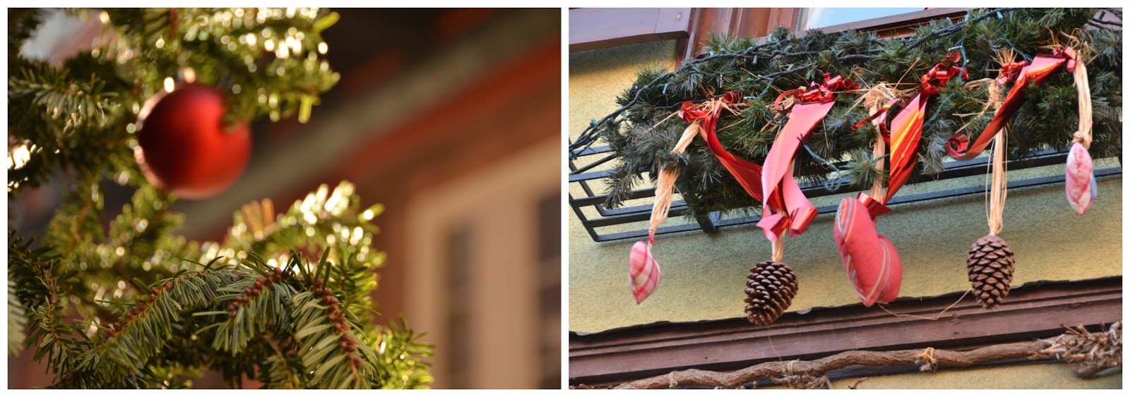 Como en todos los pueblos de la Alsacia, en Kaysersberg las casas también están perfectamente adornadas con motivos navideños y con otros motivos encantadores, me gustó mucho una decoración que tenían en una boulangerie, la fachada estaba decorada con moldes de los típicos kugelhopf, el bollo alsaciano por excelencia.