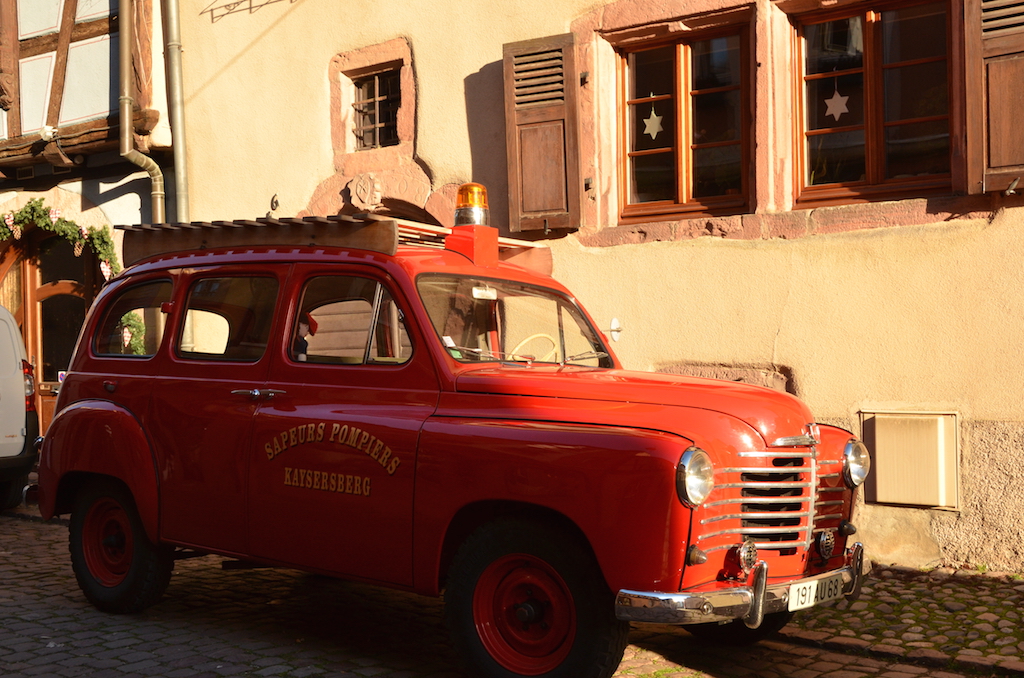 De camino al coche nos encontramos, además de con un antiguo vehículo de bomberos, con varias tiendas de vinos de la Alsacia y de otros productos típicos de la zona, de hecho fue un vino elaborado en Kaysersberg el que contó con el galardón de «gran vino de Alsacia».