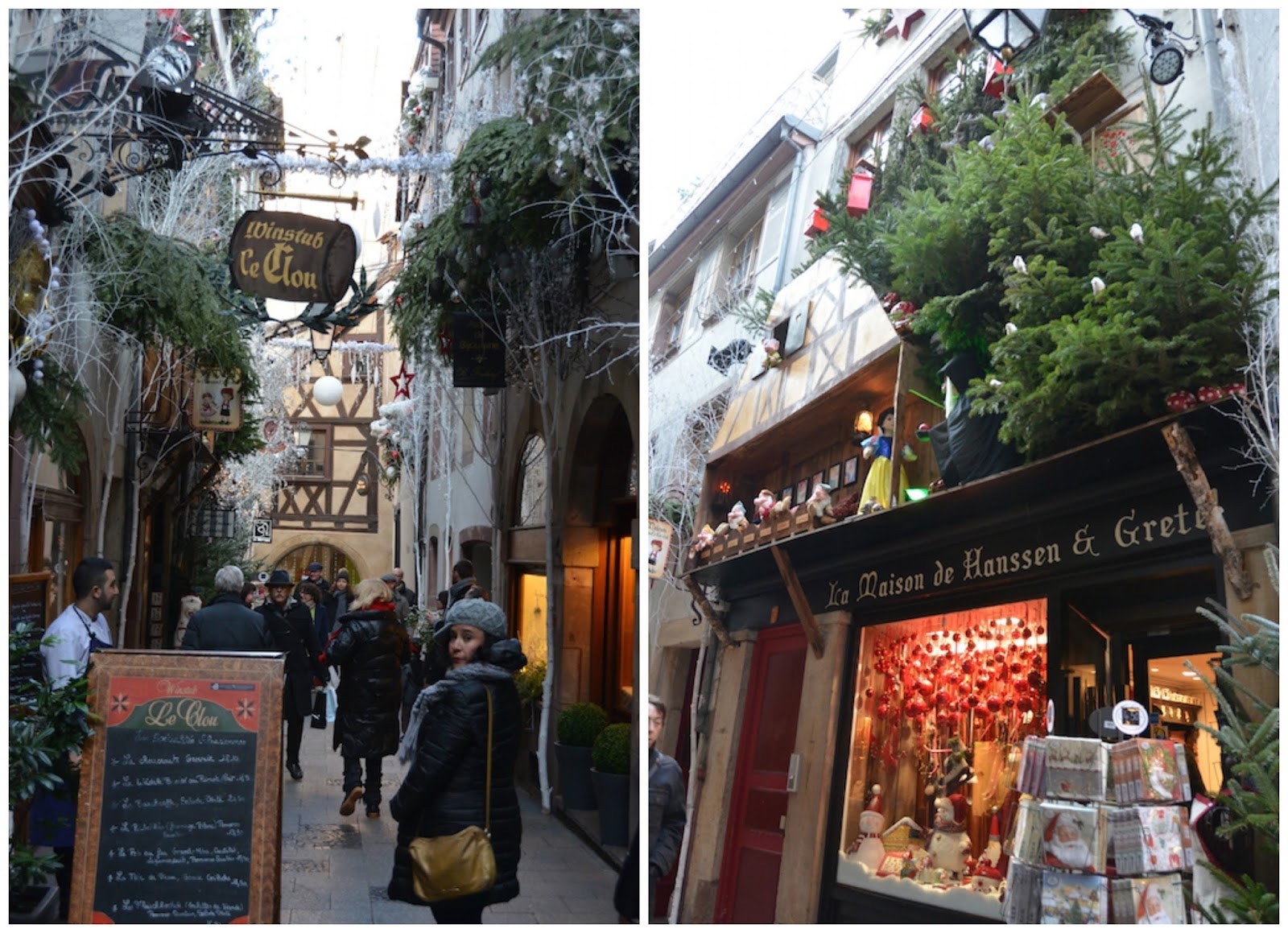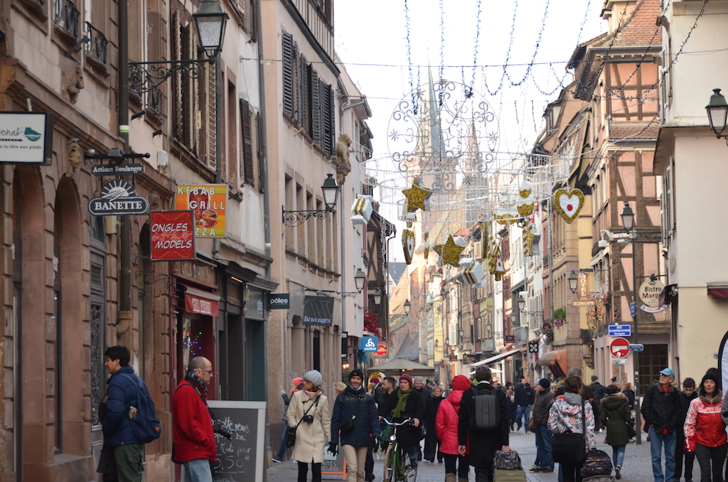 Seguimos caminando entre callejuelas pequeñitas con la decoración navideña más bonita que hayamos visto, tiendas de queso, de relojes, de dulces típicos alsacianos, tiendas de motivos navideños que hacen las delicias de cualquiera y ante las que no podemos resistirnos a pasar y comprar un pequeño recuerdo para nuestro árbol.