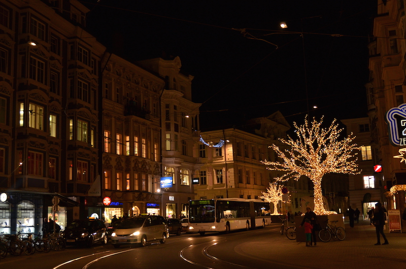 En esta época del año anochece muy pronto, así que cuando llegamos ya era de noche, aún así dimos un buen paseo por el centro, vimos alguno de sus mercadillos, un baile tradicional, cenamos en un puesto unas típicas salchichas y nos hicimos una idea de lo que nos esperaba al día siguiente, Innsbruck es una ciudad preciosa!!!