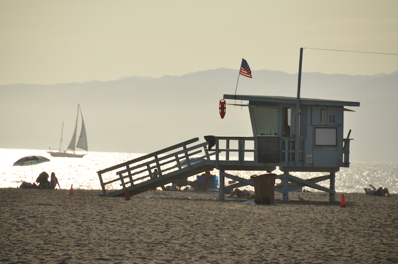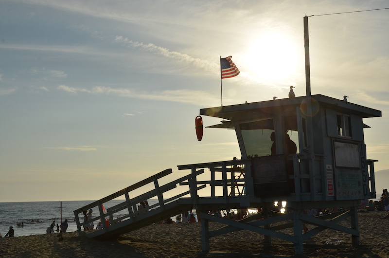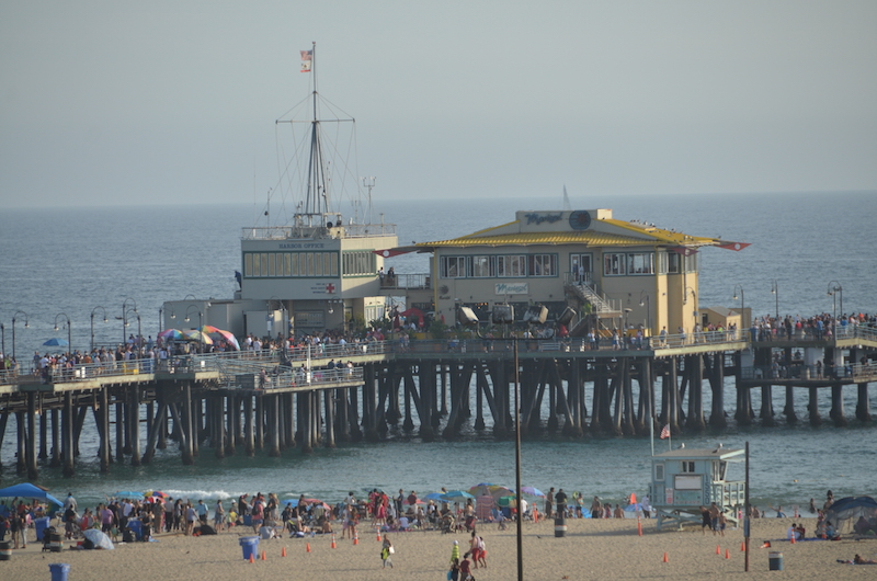 La playa de Santa Mónica es famosa por aparecer en diferentes series de televisión como Pacific Blue o la mítica Los vigilantes de la playa, allí estaban las típicas casetas de madera que eran los puestos de vigilancia.