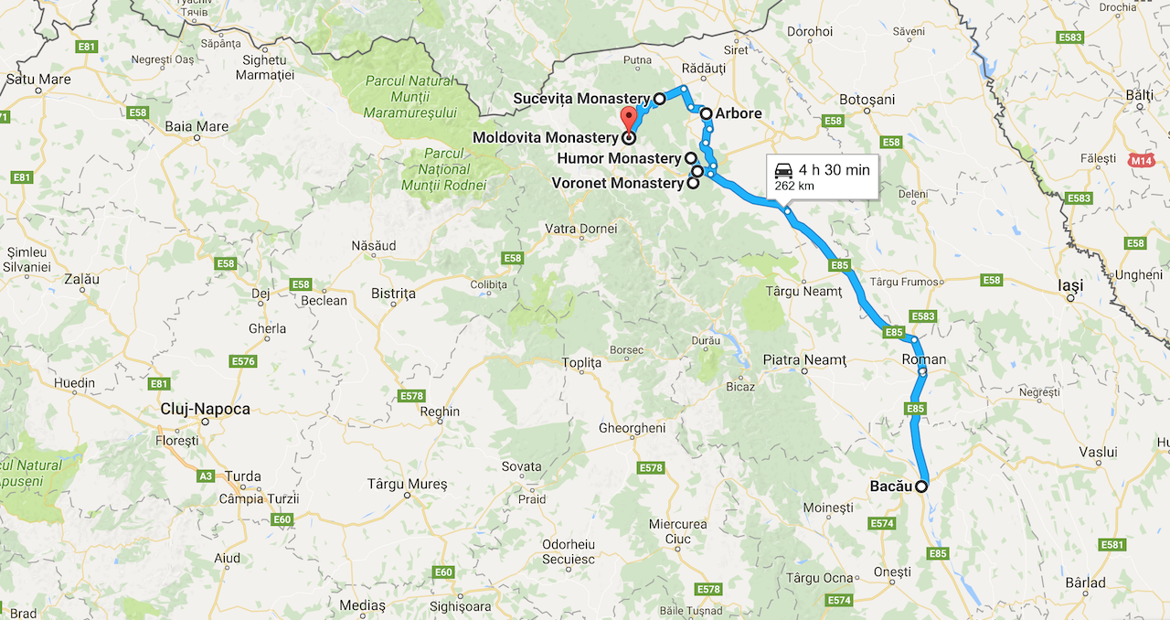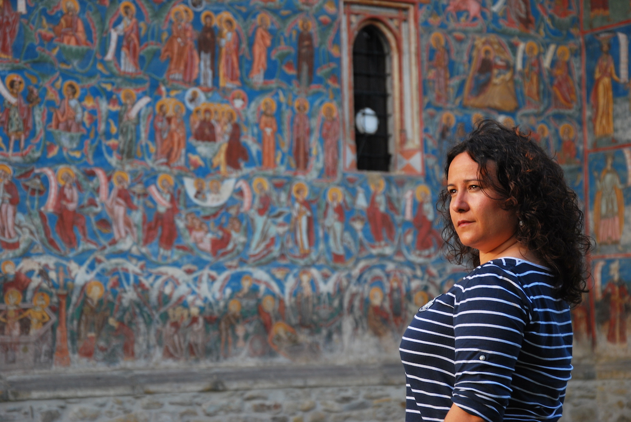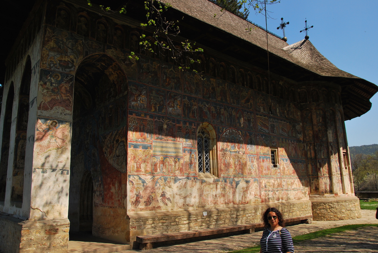 Después de un día dedicado a la conferencia que Diego daba en la universidad de Bacau, en la que nos trataron de maravilla, nos levantamos muy temprano y pusimos rumbo hacia el norte del país para visitar una de las zonas más bonitas, Moldavia, donde visitamos unos monasterios declarados Patrimonio de la Humanidad por la Unesco, los Monasterios de Bucovina, en los que destacan sus espectaculares pinturas exteriores.