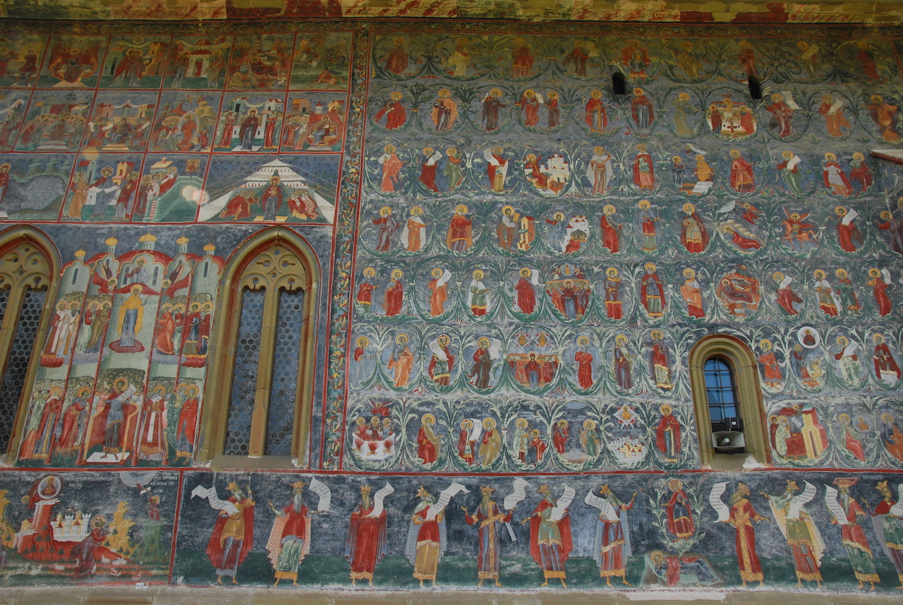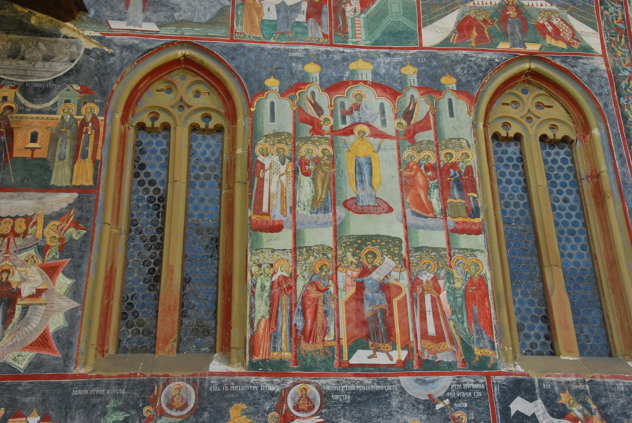 El monasterio de Sucevita es el que conserva las pinturas en mejor estado de conservación, debido principalmente a la acción protectora de los muros que rodean el complejo, lo que le da cierta particularidad a este monasterio que data de 1581.