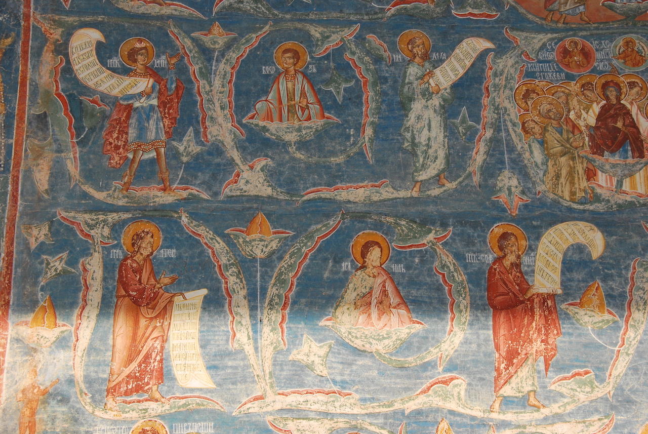 Entre sus pinturas, destaca en el muro sur el árbol de Jesé donde se muestra la genealogía de Jesús sobre un fondo azul intenso que se conoce como «azul Voronet» y cuya composición sigue siendo un misterio a día de hoy.   En el lado oeste podemos encontrar una pintura espectacular sobre el Juicio Final.