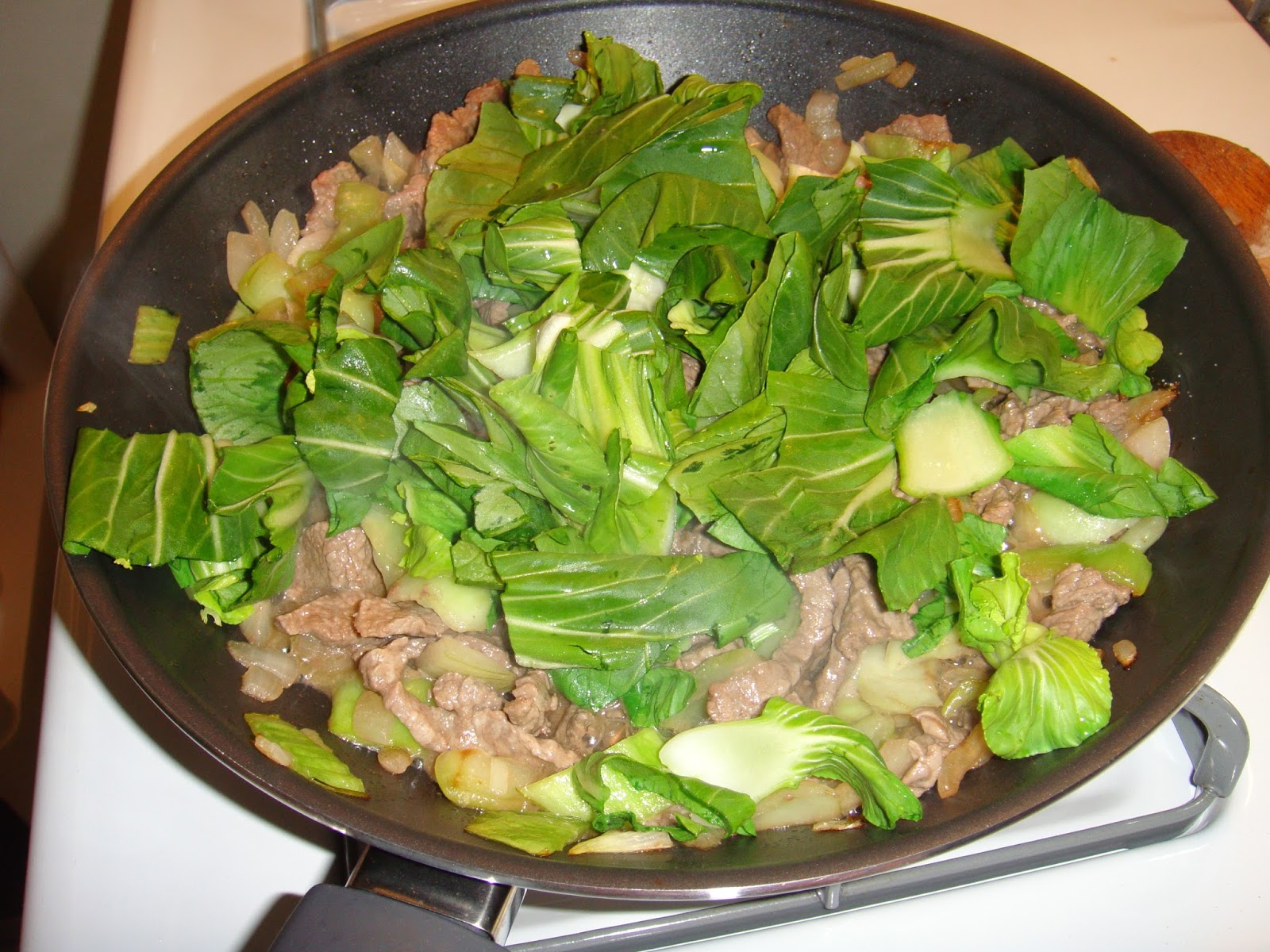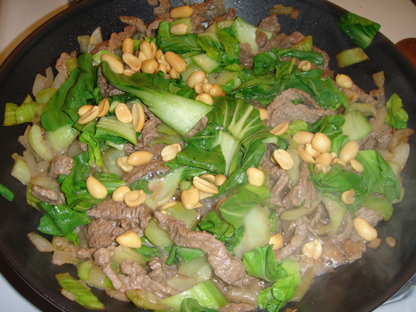 Para prepararla, se separan primero las hojas, se cortan las partes blancas por un lado, porque son un poco más duras, y las hojas verdes por otro. Yo he rehogado las partes blancas junto con una cebolla troceada, he añadido la carne de ternera en tiras y cuando estaba todo rehogado he añadido las hojas verdes y un puñado de cacahuetes crudos. El plato estaba buenísimo!!!!