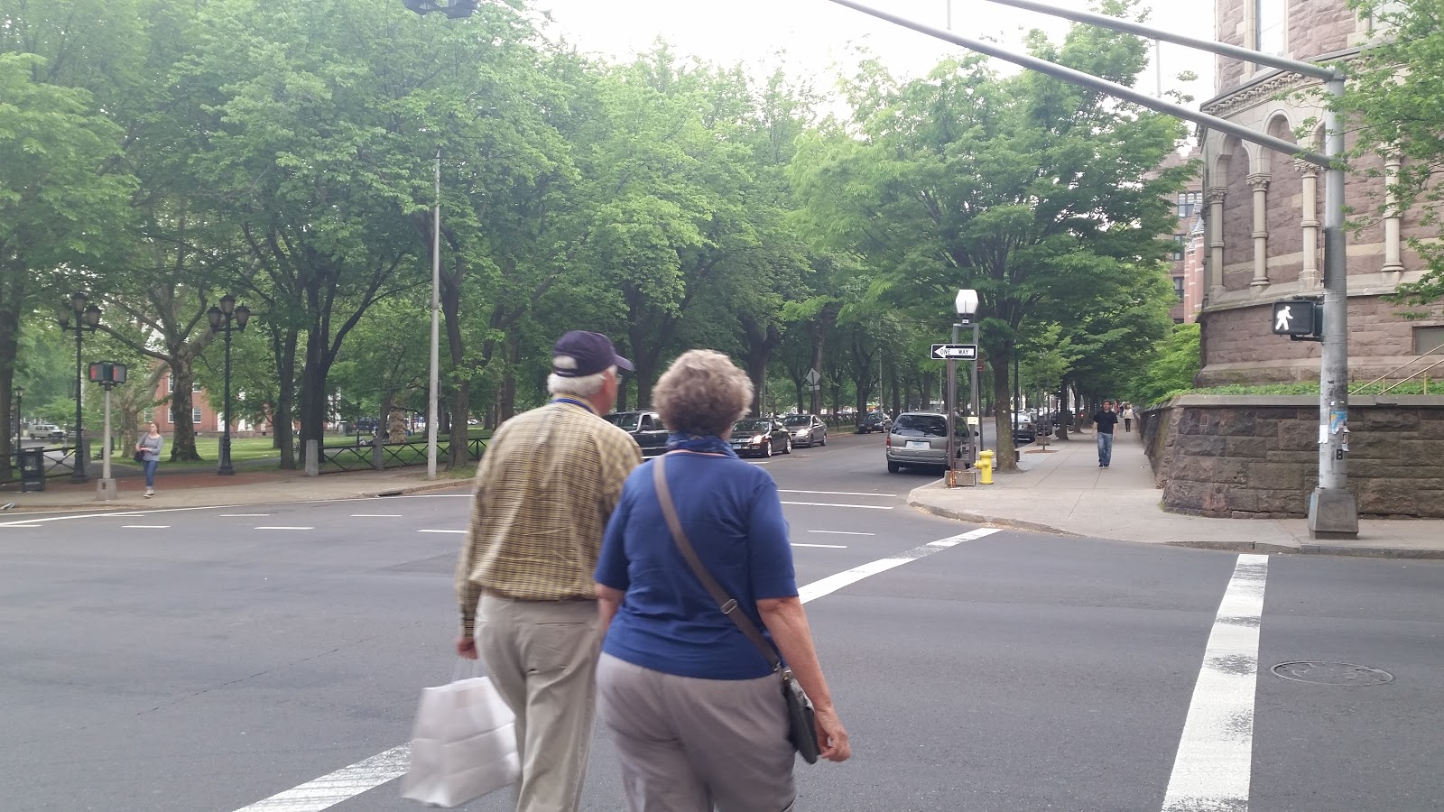 Por la tarde he salido ha dar un paseo, como el fin de semana anterior, desde hoy están llegando los antiguos alumnos que vienen a pasar unos días a la universidad, mejor dicho a su universidad, porque así lo sienten, por lo que hay bastante ambiente en la ciudad. Me ha sorprendido bastante que los alumnos de la promoción del año 50, llevan en sus tarjetas una fotografía de cómo eran entonces, claro con foto en blanco y negro, jejejeje. Todos están entusiasmados con volver a encontrarse con sus antiguos compañeros, según le han comentado en el despacho a Diego, es algo que la universidad de Yale cuida mucho.