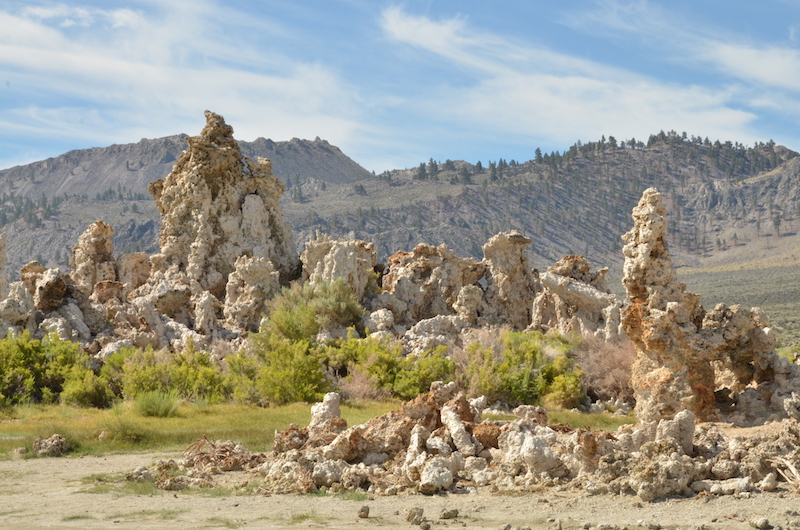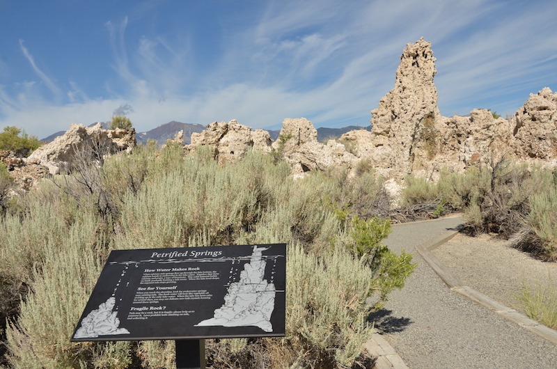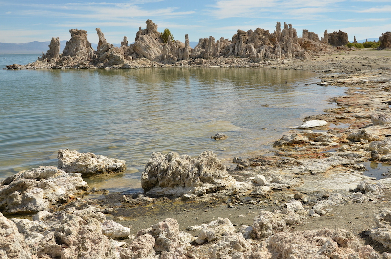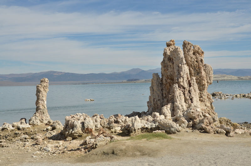 A unos 50 kilómetros al norte se encuentra Mono Lake, el segundo lago más antiguo de Estados Unidos, rodeado por conos volcánicos que se reflejan en sus cristalinas aguas de las cuales emergen torres de toba que le confieren su característica y peculiar imagen. La toba, que sobresale del agua como castillos de arena, se forma a partir de la disolución del calcio que arrastran los manantiales subterráneos y el carbonato de las alcalinas aguas del lago.