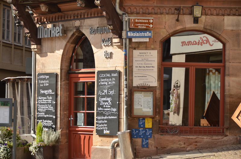 Llegamos ya de noche y fuimos a instalarnos a nuestro alojamiento para los próximos dos días, el hotel Marburger Hof, situado muy cerca del Altstad, el centro histórico medieval, y con habitaciones muy cómodas, Enseguida salimos a recorrer las calles del centro y a buscar un sitio para cenar. Encontramos uno de esos lugares que nos encantan a los dos, una típica cervecería alemana con toda la decoración de madera, con cerveza de trigo rica y con una gastronomía todavía más rica, sí, me declaro fan incondicional de la gastronomía alemana, sobre todo de los codillos, pero también de las salchichas.