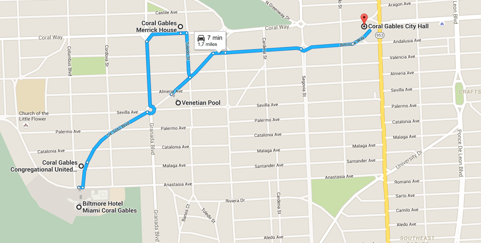 En el número 907 de Miracle Mile se encuentra la Coral Gables Merrick House, propiedad de la familia Merrick desde 1899 y bautizada por ellos mismos como Coral Gables. Aquí empezó a hacerse realidad el sueño de George Merrick de construir la «City Beauty». Esta propiedad se encuentra inscrita en el Registro Nacional de lugares históricos.