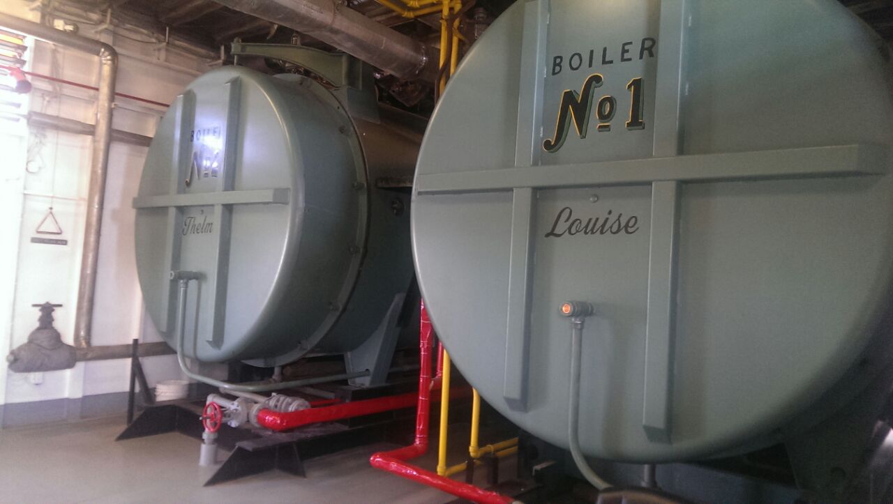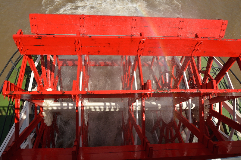 Después de comer en la sala con aire acondicionado, nos salimos a la cubierta del barco a disfrutar de las vistas al río y, sobre todo, del barco de vapor. Diego y su compañero Iván fueron a visitar la sala de máquinas. el Natchez es uno de los últimos tres barcos de vapor que siguen circulando por el Mississippi, un río con bastante tráfico según hemos podido observar en nuestro recorrido. Aunque fue construido sólo hace 40 años, es una réplica fiel de los viejos barcos de vapor que surcaban el río, una de las cosas más características de estos barcos, es la enorme rueda que los impulsa. En el recorrido se pasa por la refinería de azúcar Domino, una de las más grandes del país.