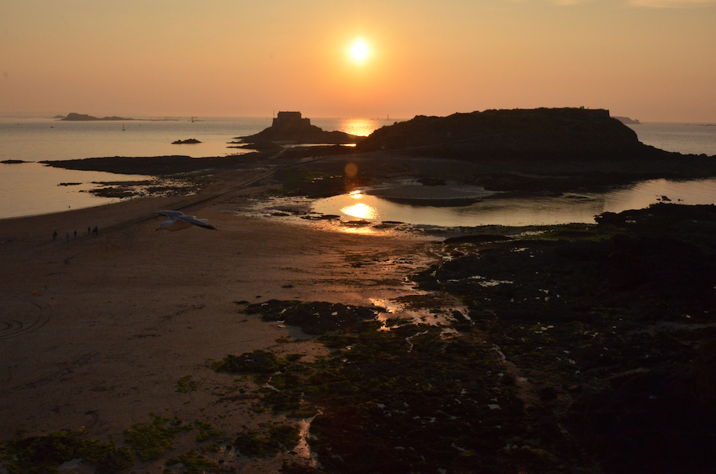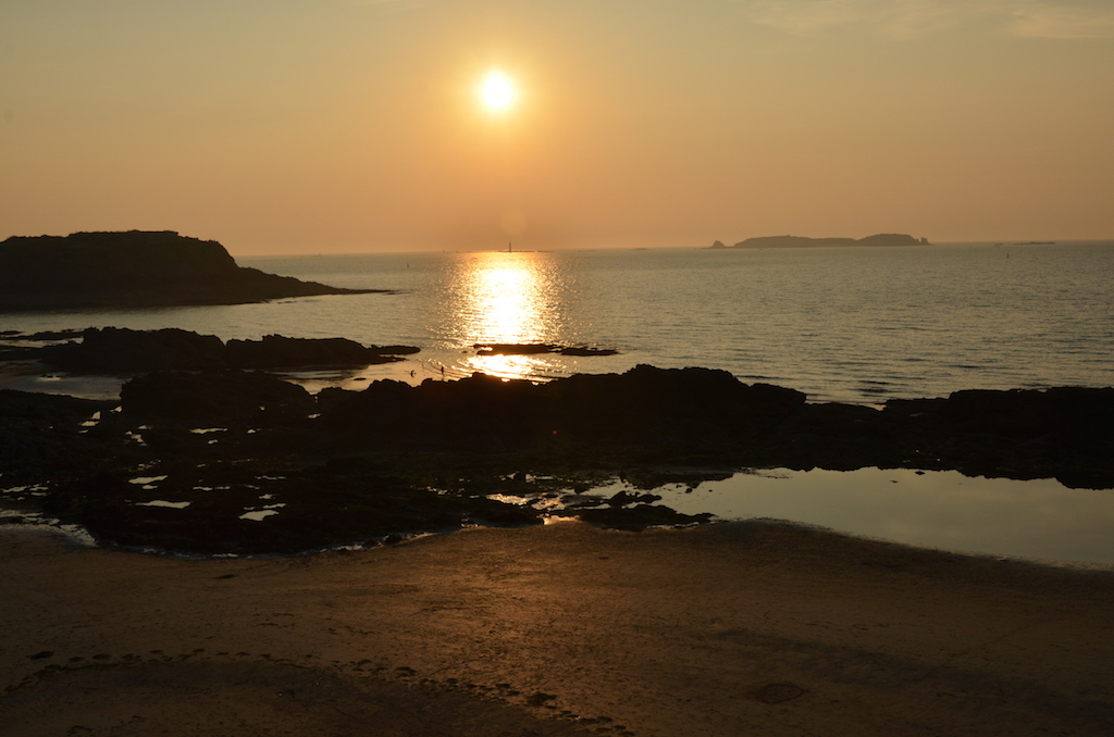 Teníamos que llegar hasta Dinan donde teníamos nuestro alojamiento, pero no queríamos marcharnos de Saint Malo sin ver el atardecer desde sus murallas, así que llamamos por teléfono a los propietarios de la casa donde nos íbamos a alojar para avisarles de que llegaríamos un poco más tarde, hicimos bien en quedarnos porque disfrutamos de un fantástico atardecer.