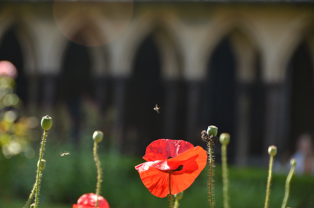 Para mí, la parte más espectacular del interior de la abadía, llega con la visita al Claustro, concebido para la meditación espiritual de los monjes que habitaban en el lugar. En él destacan las columnas de granito rosa y su impresionante jardín medieval.