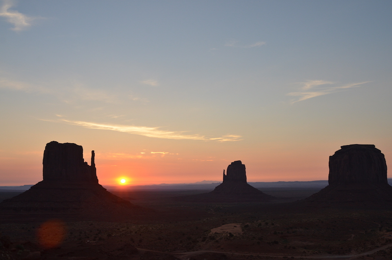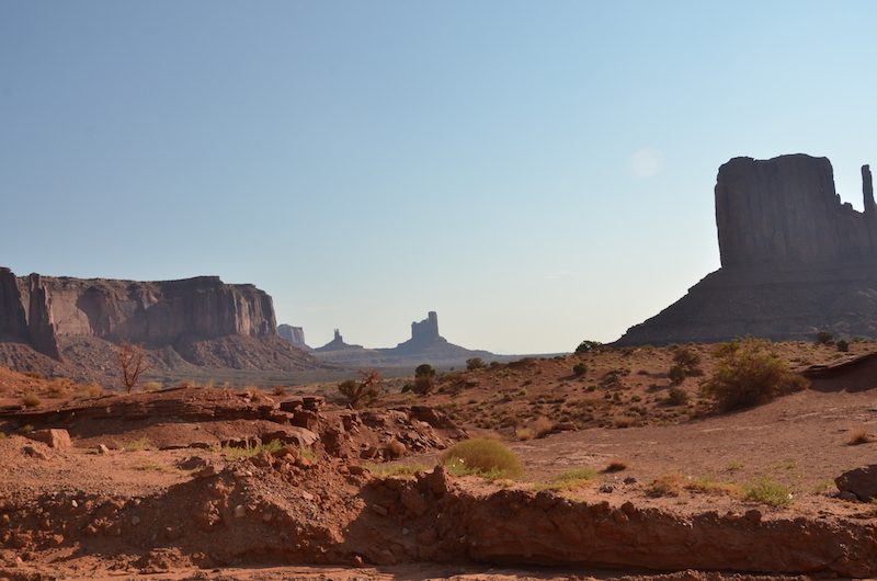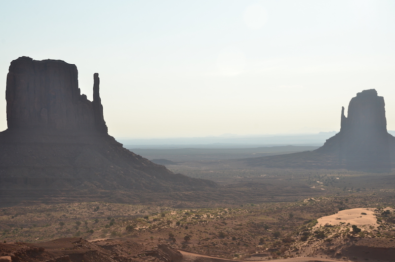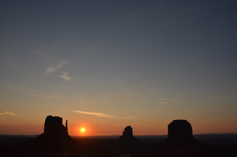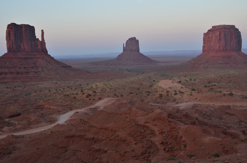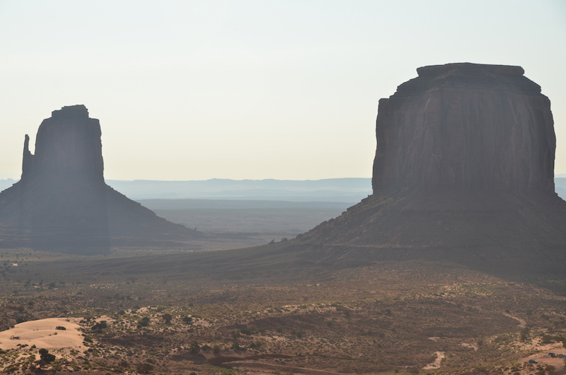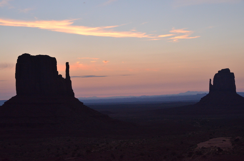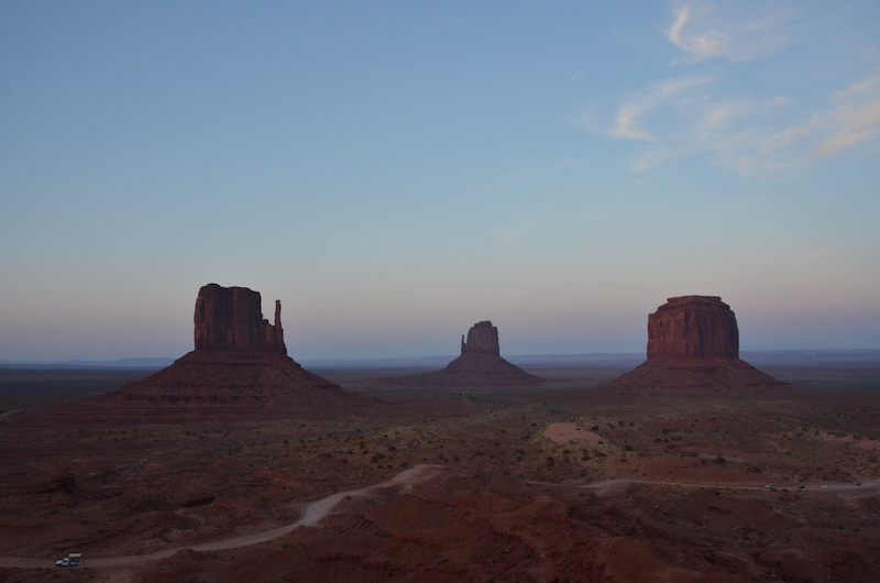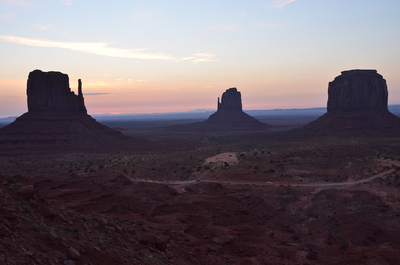 Al final llegamos a ver el atardecer en uno de los lugares más emblemáticos del oeste de Estados Unidos, Monument Valley. La imagen más reconocible de este lugar lo forman tres monolitos de piedra rojiza conocidos como el East y West Mittens y el Merrick Butte y os puedo asegurar que son mucho más grandes que lo que te puedes imaginar al ver fotografías.