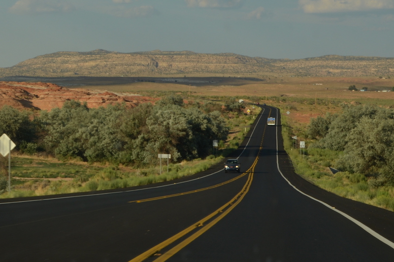 En Estados Unidos es muy frecuente tener que recorrer grandes distancias para ir de un lugar a otro, recorrimos alguna de esas interminables carreteras que parecen no tener fin, en la que en algunos momentos crees que te has equivocado de ruta pues no te cruzas con nadie en bastantes millas. El entorno empieza a cambiar, entramos en el estado de Utah y poco a poco empezamos a ver grandes monolitos de piedra rojiza que hacen típico este lugar.
