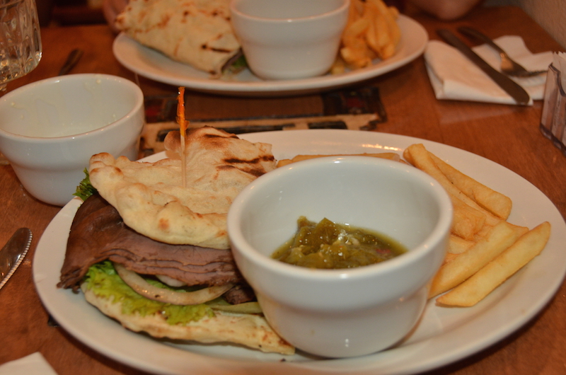Nos alojamos en el único hotel que hay dentro del Parque de Monument Valley, «The View Hotel», integrado bastante bien en el paisaje y con terrazas desde las que obtienes unas vistas espectaculares de los tres monolitos principales del parque, desde luego que merece la pena pagar el elevado precio de sus habitaciones, salir por la noche, con total oscuridad y ver millones de estrellas es algo que nos arrancará una sonrisa cada vez que venga a nuestro recuerdo.Allí no hay mucho donde elegir, así que cenamos en el restaurante del hotel, comida mexicana bastante aceptable.