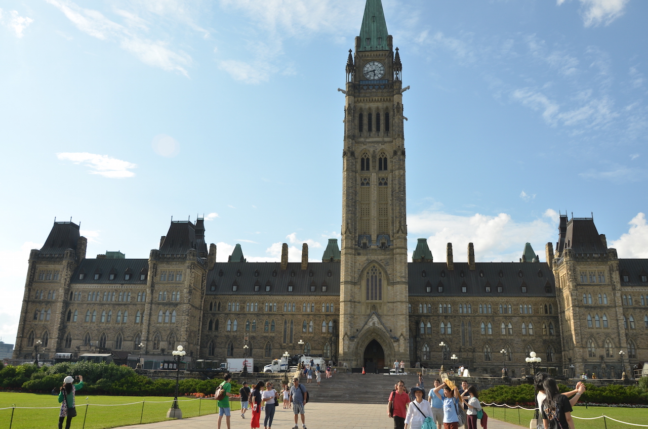 El Parlamento de Canadá es un precioso edificio con los tejados de cobre abovedado en color verde. Su edificio principal, el Centre Block, cuenta con la emblemática Torre de la paz. Este edificio es la sede del Senado, Cámara de los Comunes y la Biblioteca del Parlamento.