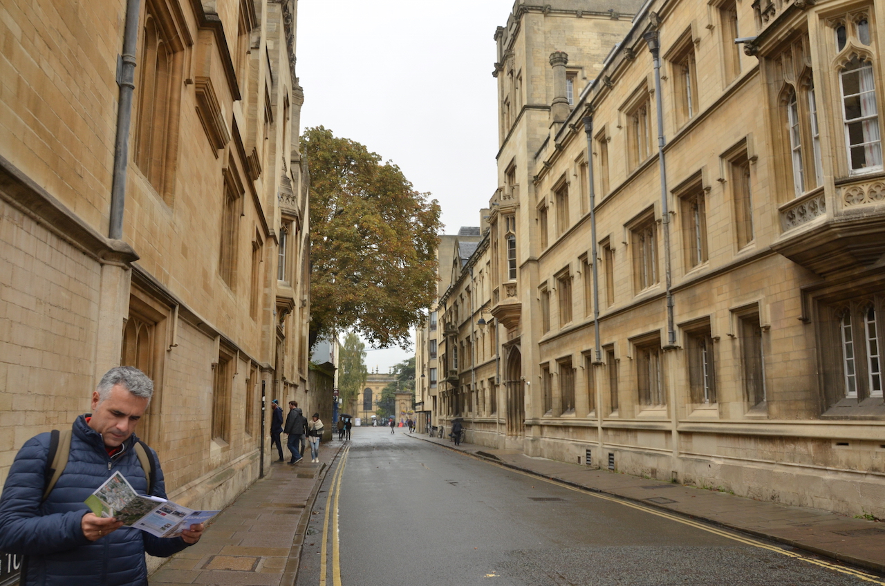 Aparcamos el coche junto al college en el que Diego se quedaría los próximos días, el Exter College,  así que una vez resuelto ese tema, nos pusimos en modo visita!! Llegamos a Broad St donde encontramos un pequeño mercado y donde se encuentran dos de los colleges que forman parte de la universidad, el Trinity College que estaba cerrado a los visitantes y que sólo vimos desde la valla y el Balliol College al que volveríamos más tarde para visitarlo ya que aún estaba cerrado a las visitas.