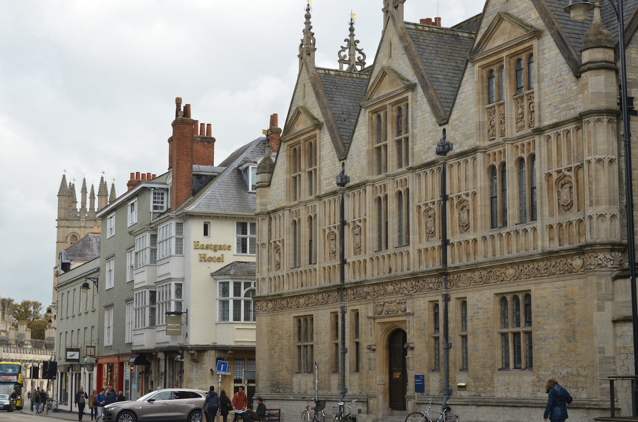 Se encuentra junto a la Bodleian Library, la principal biblioteca de investigación de la universidad y una de las más antiguas de Europa.