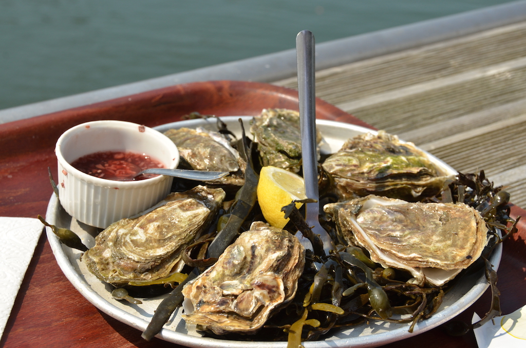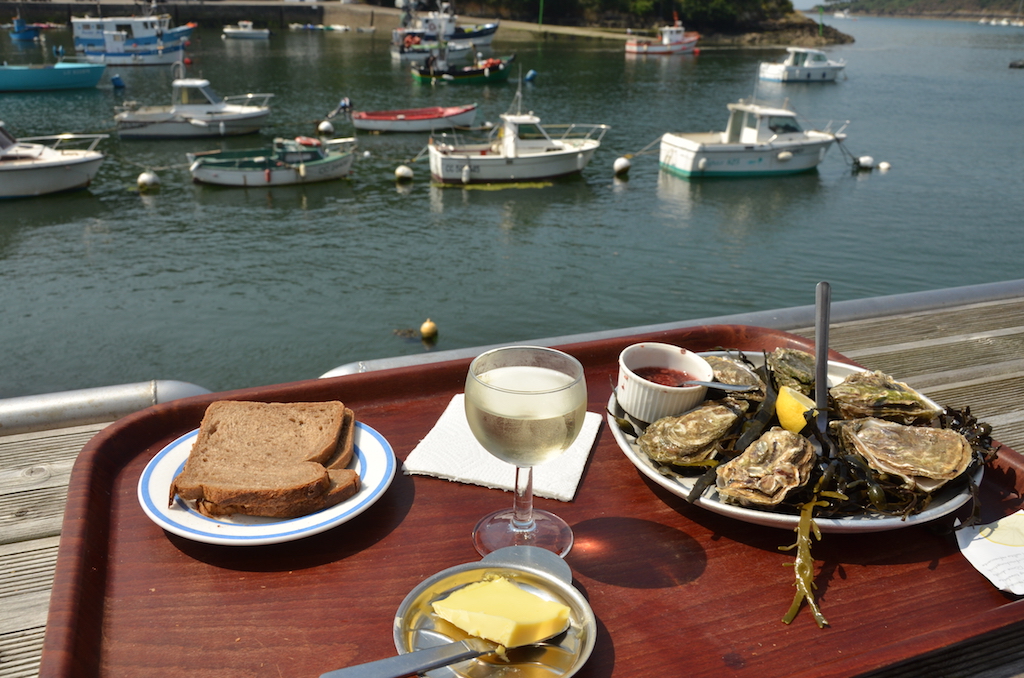 A menos de 5 kilómetros de Pont-Aven se encuentra el bonito puerto de Riec-sur-Belon, que da nombre a una de las ostras más célebres de Bretaña, la «Belon». Era hora de tomar algo, así que nada mejor que probarlas allí mismo para descubrir si es verdad ese rico sabor a nuez que las caracteriza.