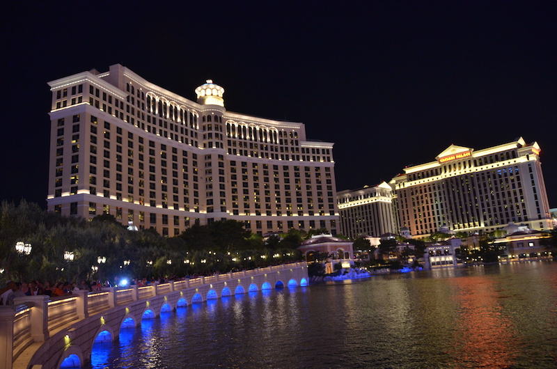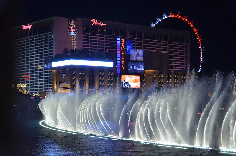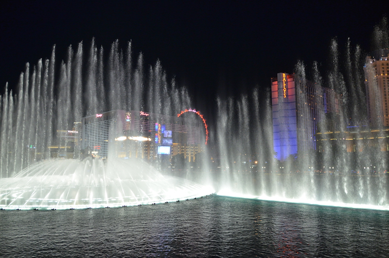 A la vuelta y para sofocar un poco el calor que hace en esta ciudad, nos bajamos a la piscina del hotel, luego un buen baño en el jacuzzi y nuevamente salimos a la calle a seguir conociendo los impresionantes hoteles y locales que hay a lo largo del Strip, pero primero disfrutamos del espectáculo de las fuentes del Bellagio.