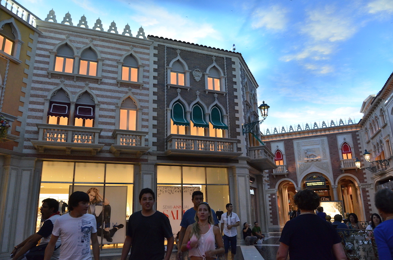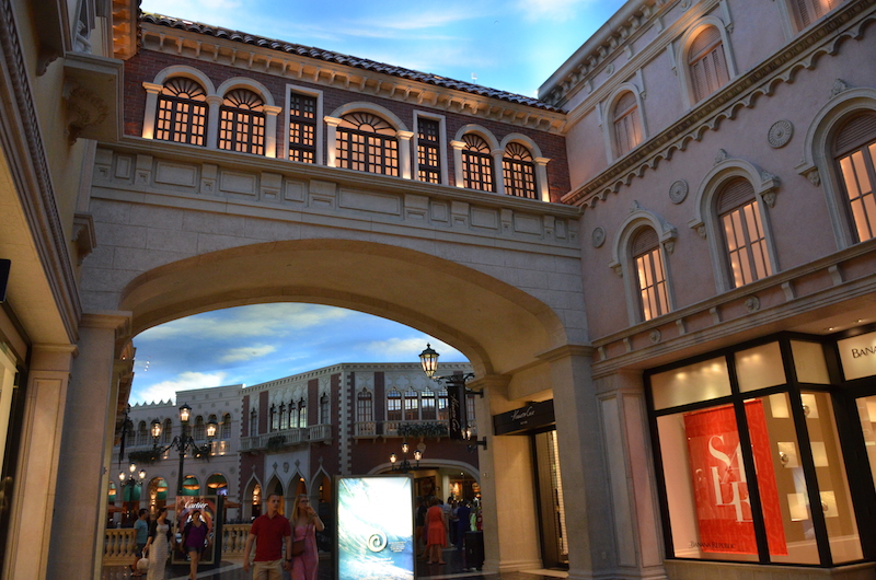 Cenamos en el Venetian, uno de los más bonitos de la ciudad, cuando te encuentras dentro parece que estés en el gran canal de Venecia, con su cielo azul, sus góndolas, sus pizzerías…..
