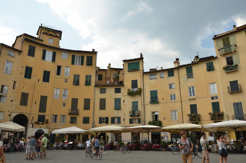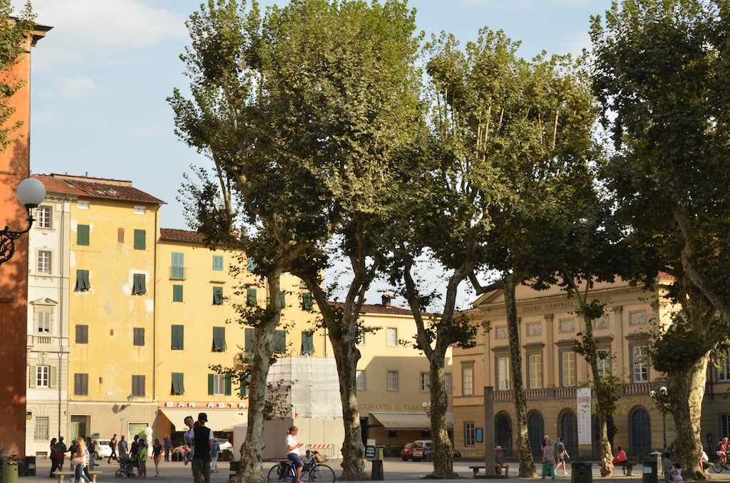 De camino al coche pasamos por la Plaza de Napoleón, la plaza principal de Lucca, rodeada de interesantes edificios como el Palacio Ducal.