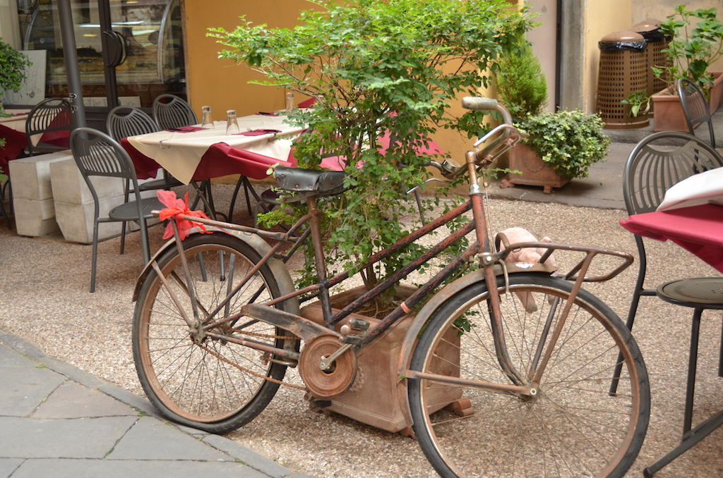 Tengo una extraña obsesión con las bicicletas antiguas, bueno, en general con las bicicletas, ya durante nuestra estancia en Estados Unidos, dediqué uno de los post a las fotografías de bicicletas, y en Lucca he encontrado muchas y preciosas, cuando me da por algo no hay quien me pare jejeje.