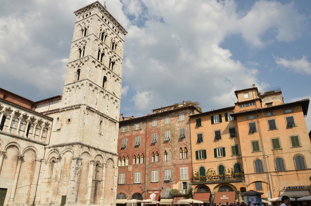 Llegamos a la plaza de San Miguel donde se encuentra la Iglesia de San Michele in Foro, un espectacular templo construido durante el siglo XII que constituye uno de los pocos edificios de estilo románico que quedan en la ciudad.