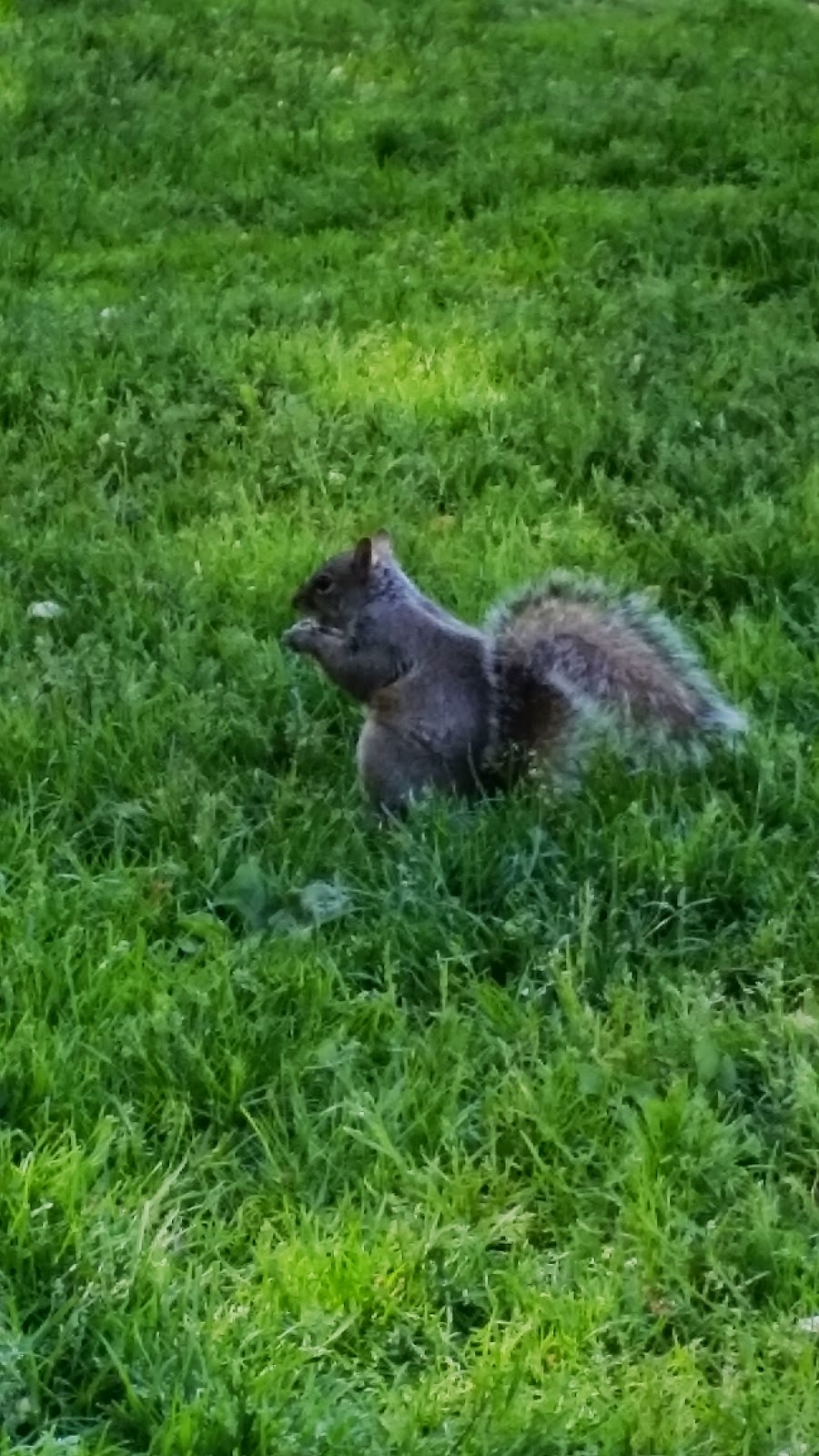 Mientras pintaba no estaba sola, había una ardilla que ha estado todo el rato yendo y viniendo aprovechando los restos de comida que se van quedando por el césped, son tan graciosas!!!