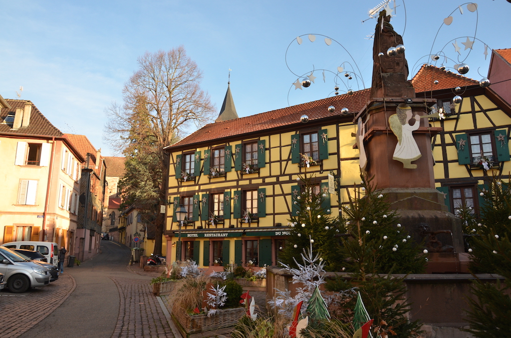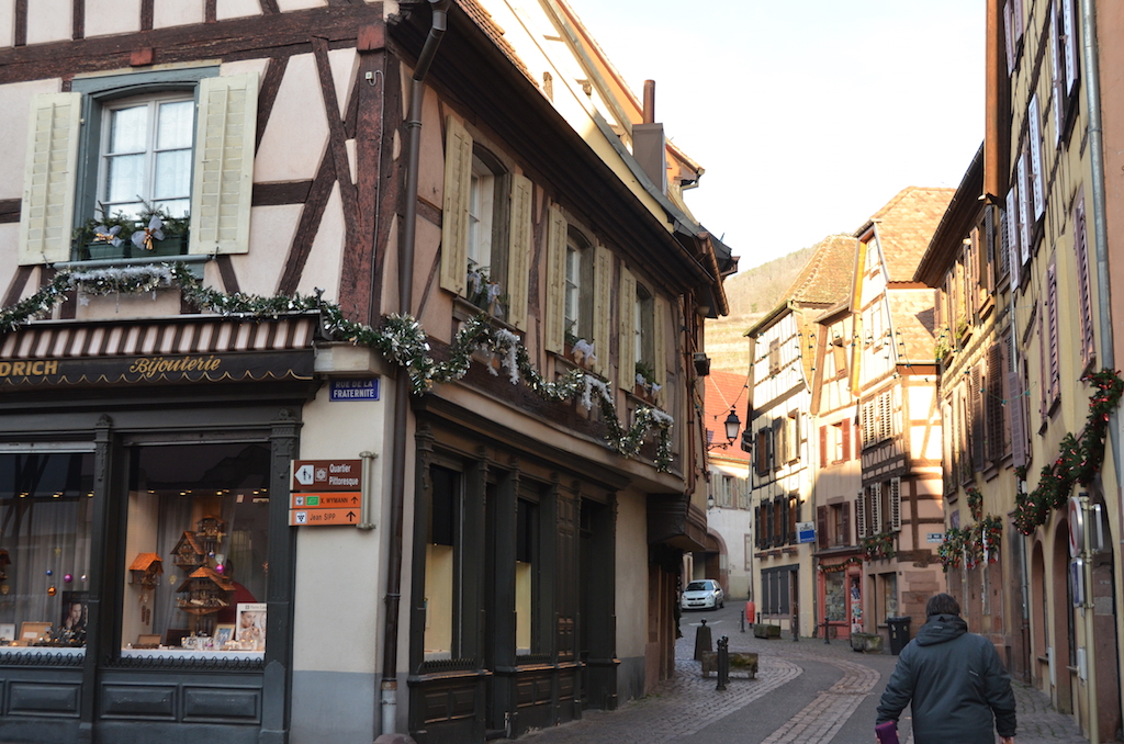 En esta calle es famosa la Maison Zimmer, la que aparece en la imagen de abajo en un color azul añil precioso que destaca sobre las vigas de madera que conforman la fachada. Fue construida en el siglo XVI por un enólogo procedente de la ciudad de Colmar, hoy en día es un restaurante donde se pueden degustar típicos platos alsacianos.