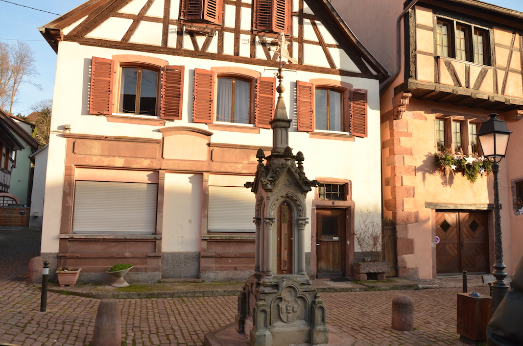 Junto a esta fuente y bajo el Dolder de Riquewihr se abre uno de los espacios más pintorescos de la ciudad.