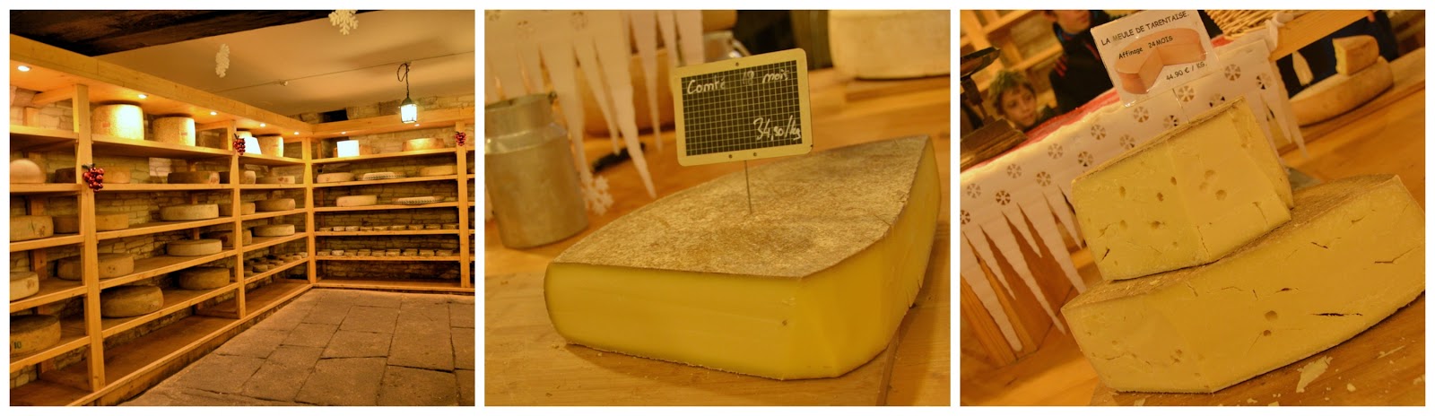 Entramos a una tienda de quesos, había que bajar unas escaleras y la quesería se encontraba en los bajos de una típica casa alsaciana. Allí había expuestos muchísimos quesos enormes y todos con una pinta excelente. El encargado nos dio a probar alguno diferente, pero no pudimos comprar porque no tenía la posibilidad de envasar al vacío.