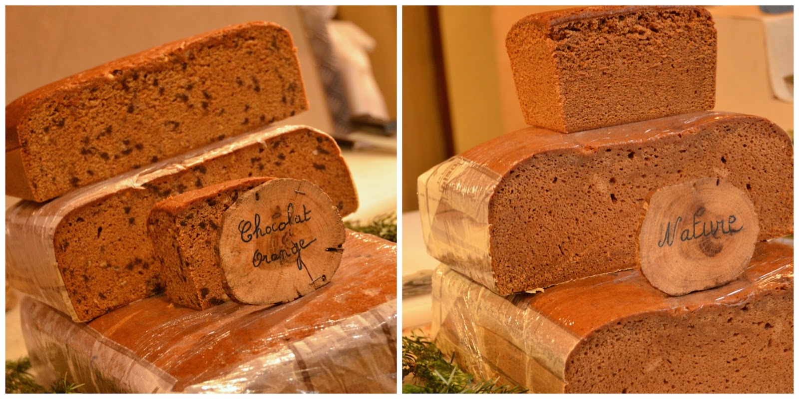Una de las cosas que probamos en los mercadillos que íbamos viendo (el primero fue en Colmar) y que nos encantó, fue el Pain d’ Épices (Pan de Especias), un producto muy típico en esta época del año en la región de la Alsacia y también en la vecina Alemania y en Bélgica. Se elabora con harina de centeno, especias de varios tipos como canela, jenjibre, clavo, cardamomo, se suele endulzar con azúcar moreno y miel y se le puede añadir fruta seca, pepitas de chocolate y otros ingredientes. El natural se suele comer para acompañar quesos y patés y está buenísimo, los que llevan fruta o pepitas de chocolate se suelen comer solos, en desayunos y meriendas y resultan igualmente exquisitos, nosotros probamos ambos y compramos unos pequeños para comer en casa después, aún estamos disfrutando de su sabor…..