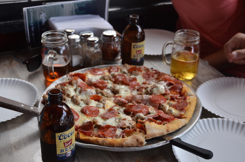 Como no habíamos comido aún, aprovechamos para sentarnos en la terraza de una pequeña pizzería para comernos una riquísima pizza acompañada de unas cervezas de la zona.