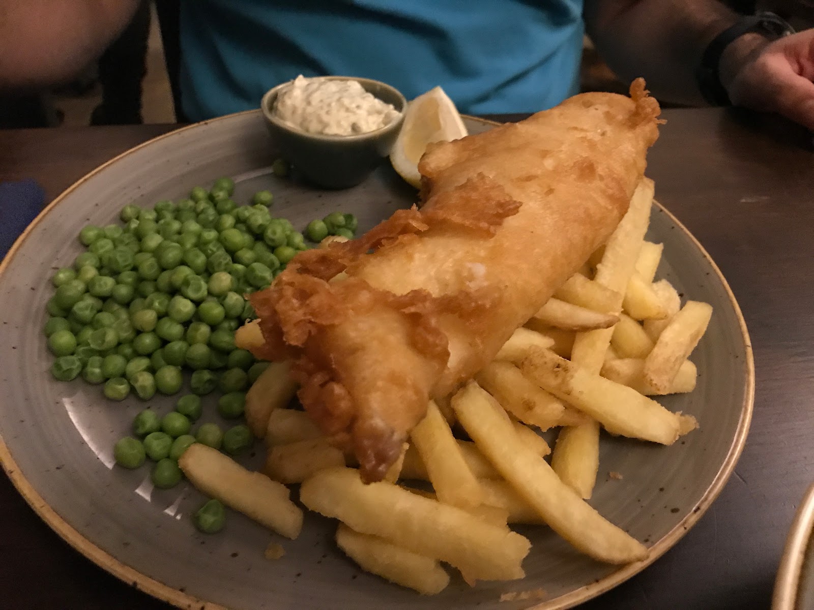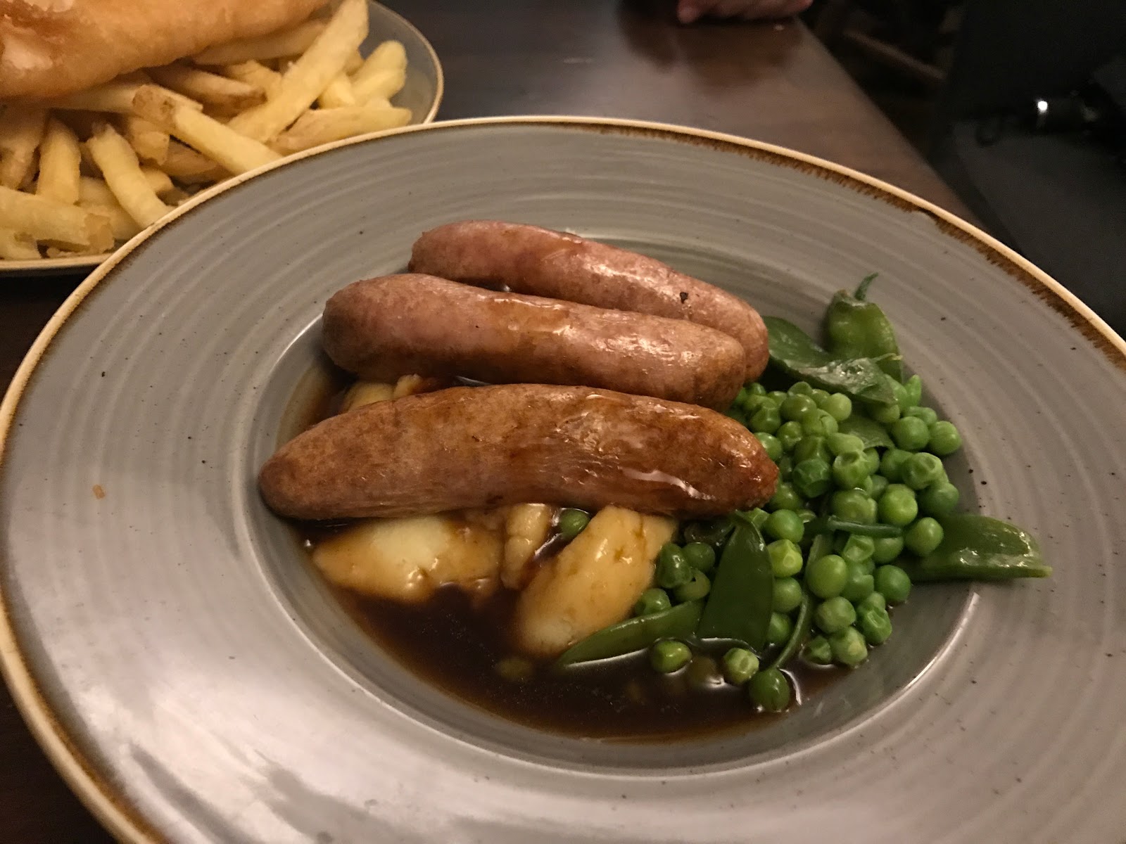 Pedimos un típico fish and chips y un plato de salchichas y estaba todo bastante bueno y muy bien presentado.