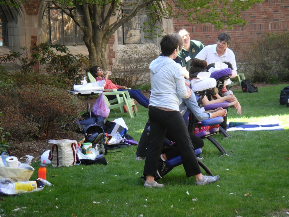 Al pasar por la puerta del Hall of Graduate Studies he visto que estaba abierta y que dentro se oía música, me he acercado y he visto que había algo parecido a una fiesta, así que …… para dentro! Allí había gente dando masajes, mesas con comida y como una especie de castillo hinchable de velcro en el que entraban con trajes especiales para quedarse pegados allí, parecía bastante divertido, he estado un rato observando como saltaban y se quedaban pegados en la pared del mismo. El Hall of Graduate Studies fue construido en 1932 como un edificio para diferentes usos, clases, oficinas y también zona residencial.