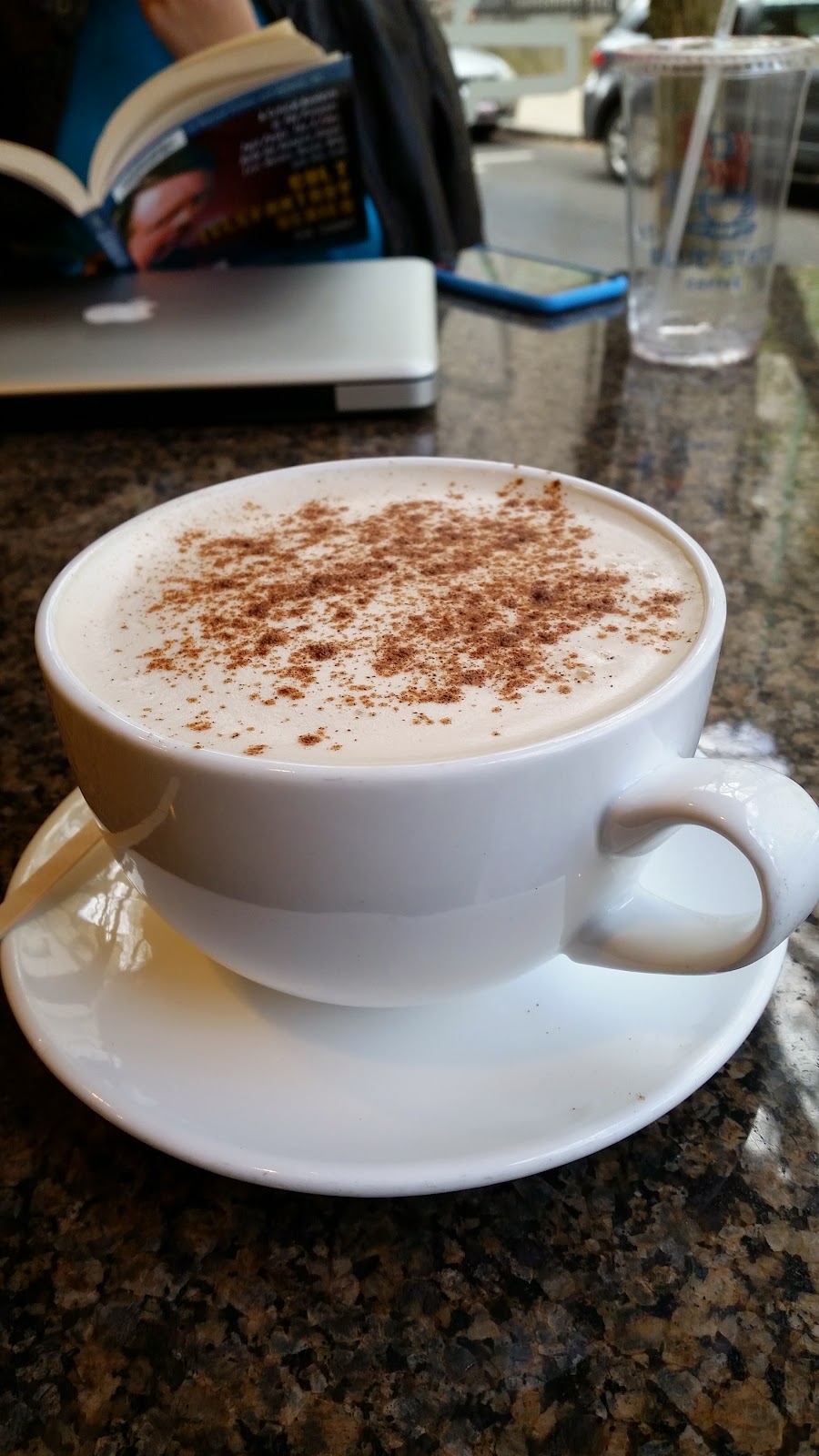 Mientras esperaba a Diego, me he tomado un Chai Latte en el Blue State Coffee de la calle Wall St, a dos minutos del Becton Center. Es un lugar que siempre está lleno, cada uno con su ordenador, Mac la mayoría, estudiando, leyendo o simplemente entreteniéndose un rato…..
