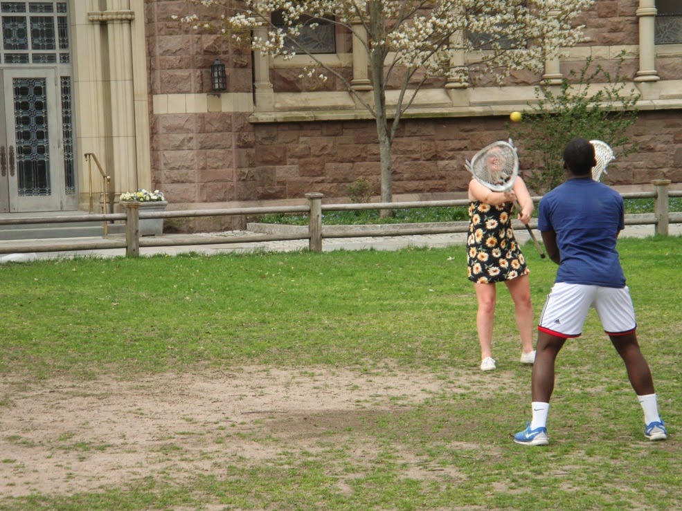 Dos estudiantes jugando a Lacrosse |