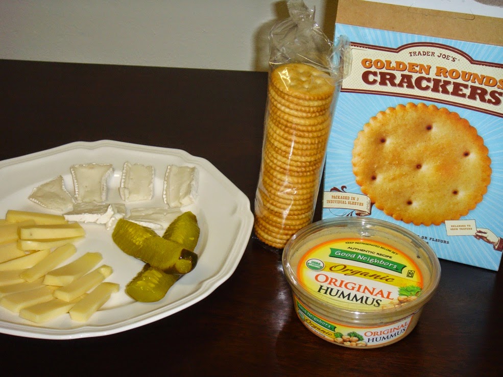 Después de un buen rato de ejercicio, vuelta a casa para ducharnos y cenar. Un poco de hummus con unos crakers y un plato de queso con unos pickles (pepinos en vinagre).