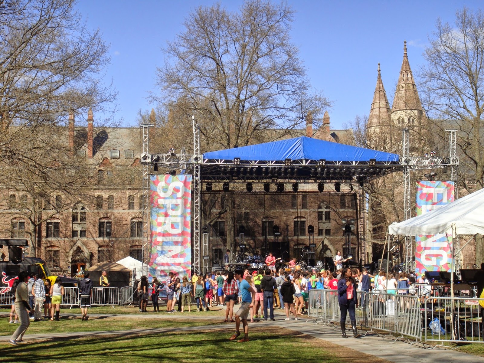 El título de la entrada, Spring Fling 2015 es un acontecimiento que tiene lugar hoy sábado en el Old Campus de la universidad con motivo de la finalización del curso académico. Aunque el concierto principal comienza a las 7.30pm, hemos pasado por allí por ver un poco el ambiente. Han colocado un escenario, y una zona de comida con barbacoas incluídas!!!! Seguro que los estudiantes se lo pasan genial, y nosotros también!!!