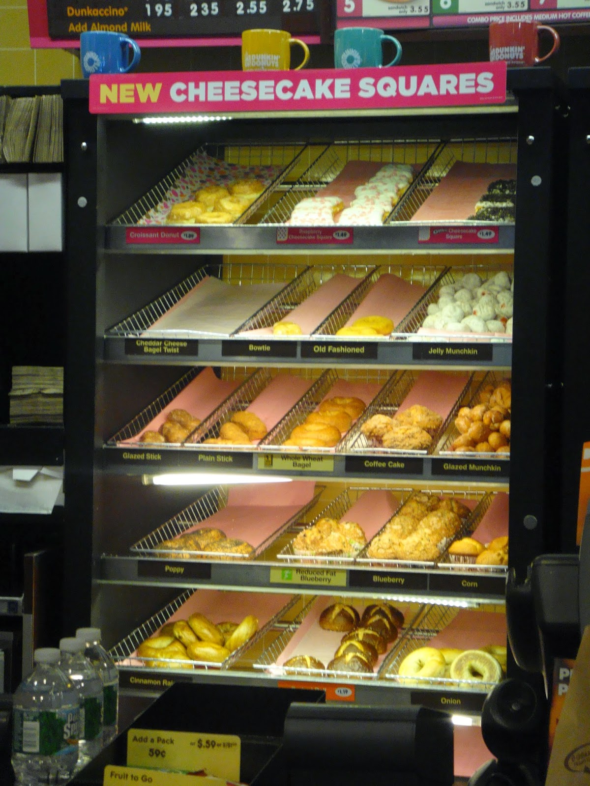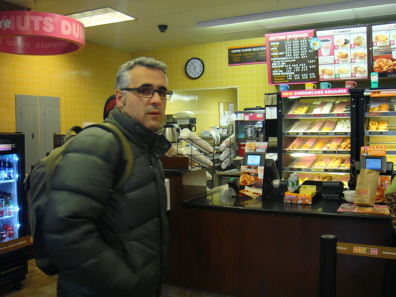 A Diego le apetecía un Dunkin’ Donuts para merendar y aquí son especialistas en ellos, hay más locales de esta franquicia que de ninguna otra, se ha pedido uno de oreo. Me ha llamado la atención que dentro del local había un cajero automático tuneado, jejeje, mientras Diego pedía me imaginaba….¿Saldrá dinero o saldrán donuts?…..