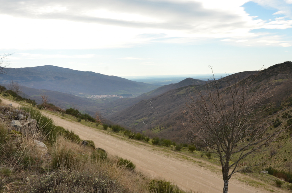 Salimos en coche desde La Garganta en dirección a Candelario. Aparcamos en un descampado cerca del Embalse de Fuensanta, también conocido como embalse de Navamuño, donde justo enfrente sale una gran pista forestal para caminar y desde la que se obtienen unas vistas impresionantes del Valle del Ambroz, con la localidad de Hervás a tus pies.