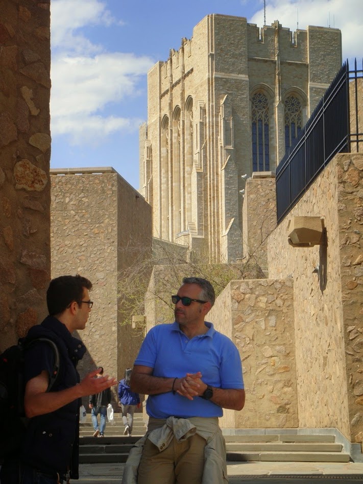 La verdad es que el tour ha estado muy entretenido y nos ha contado cosas muy interesantes de la universidad, él fue muy bien acogido cuando comenzó aquí sus estudios y se siente tan orgulloso de este lugar que pertenece al grupo de estudiantes que colaboran con el Visitor Center para este tipo de tour. Diego le ha preguntado varias cosas sobre el funcionamiento académico de Yale, el porcentaje de aprobados, las horas de clase, etc., nos ha sorprendido bastante que un 99% de los que entran se gradúan, la verdad es que la selección inicial que se hace es muy importante.