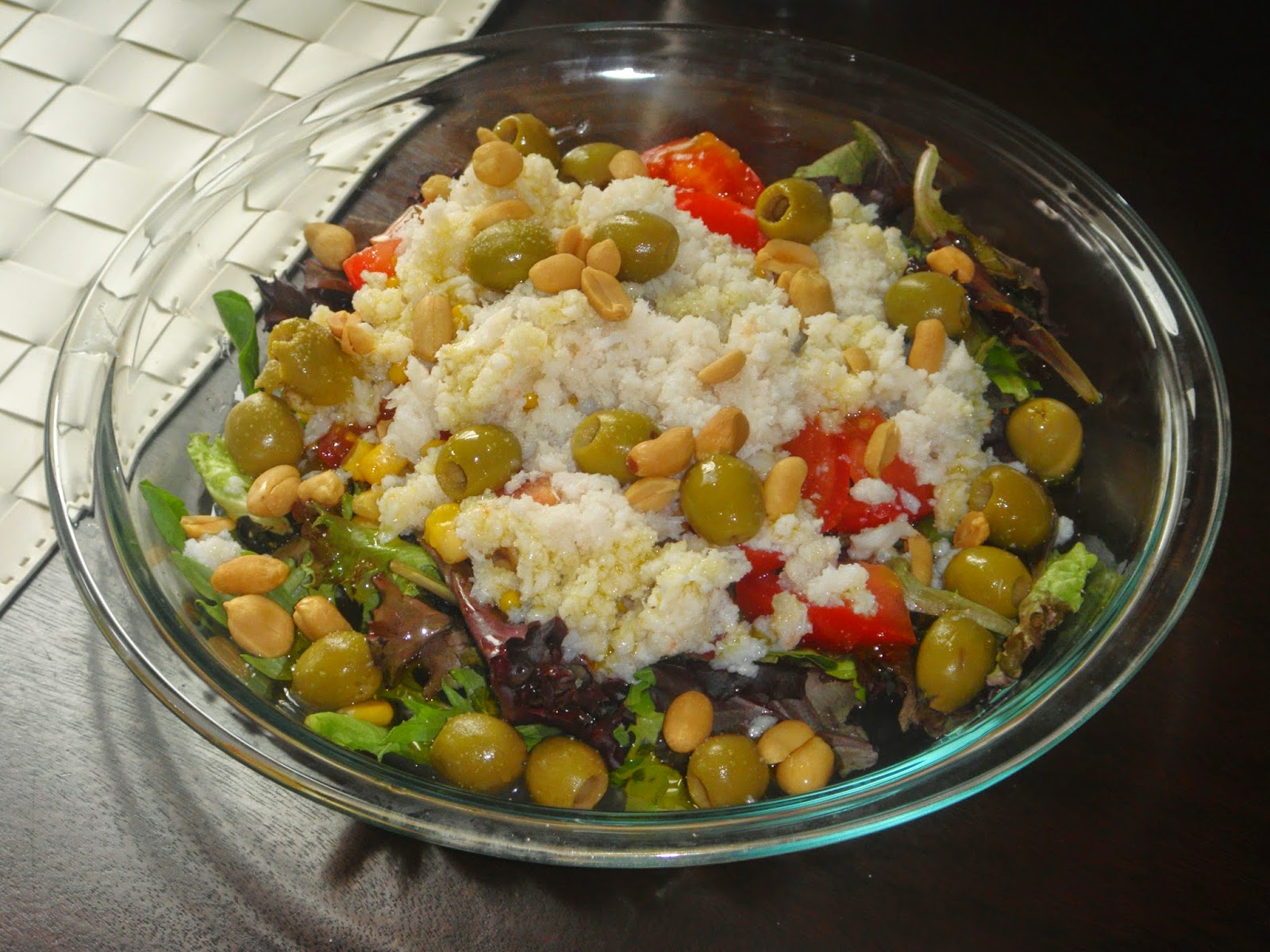 Hoy para comer ha tocado una ensalada con variedad de hojas (llevaba hasta hojas de apio y perejil) con carne de cangrejo y unas salchichas a la plancha.